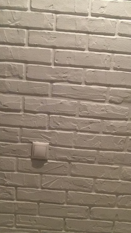 Муж сначала попробовал небольшую часть стены сделать, молярку примерно 1 см. После нанесения штукатурки мы делали рельеф пакетом смятым, молярка легко снималась. Чем раньше снять молярку тем ровнее будет кирпич, мы хотели наоборот, подождали чтоб схватилась немного и срывали, а потом я мокрой кистью контур сглаживала. Большую площадь лучше делать частями и не ложите очень тонкий слой, чтоб смотрелось под декоративный лучше немного толще. Муж на второй части стены сделал тонкий слой и рельеф не успел сделать толком .т.к. гипсовая штукатурка уже норм схватилась и контур было сложнее сгладить.