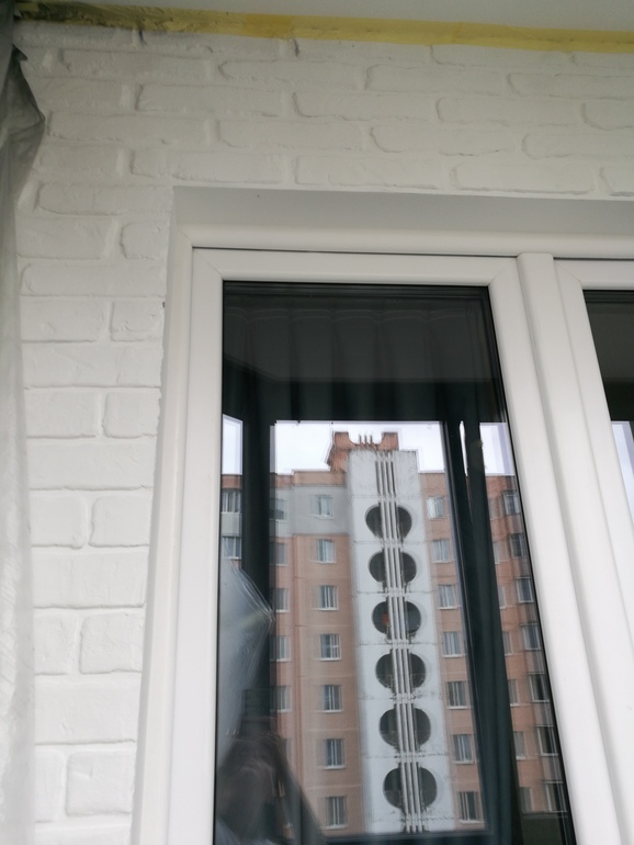 Да, балкон, использовали молярную ленту, скотч отклеивался. Главное быстро обработать края мокрой кистью после снятия ленты, а то гипсовая быстро сохнет