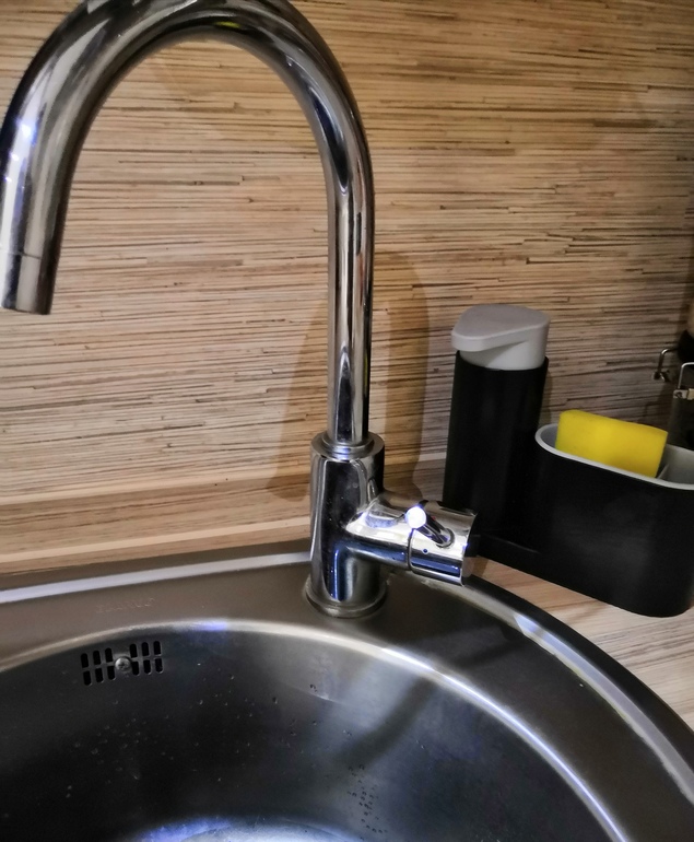 П. с. Тоже не люблю когда на кухне что то стоит. У меня вот такой органайзер для губок и фери , внимание не привлекает и очень удобно.