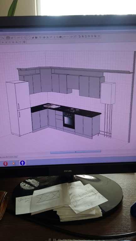 У моей свекрови так как у вас нарисовано, и мойка в углу. Голове не удобно. Подошел близко и дышишь в дверь. внизу делайте больше выдвижных ящиков.