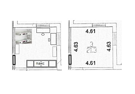 В комнате будет стоять двухэтажная кровать 2х0,8 м и шкафы пакс 2х0,5 м, возможно так же 2 комода хемнес для игрушек и канцтоваров, но наверно это перебор, остальное варьируется.