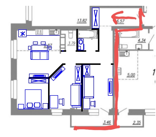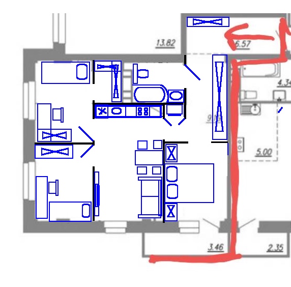 Перепланировки стен. Согласование перепланировки квартир и нежилых помещений.Девочки, добрый день. Имеется двое детей 7 и 3 лет, и я собственно с мужем. Есть возможность купить такую квартиру, 3ка, 63 кв. в новостройке.