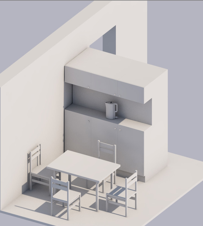 Ещё по стенке у детской можно неглубокий шкаф на всю стену поставить без ручек. При глубине 25-30 см в него слон войдёт ))) И крупы, и банки, и техника. В нем нишу для чайника и кофеварки, например, чтобы конструкцию визуально облегчить и они ближе к столу были.