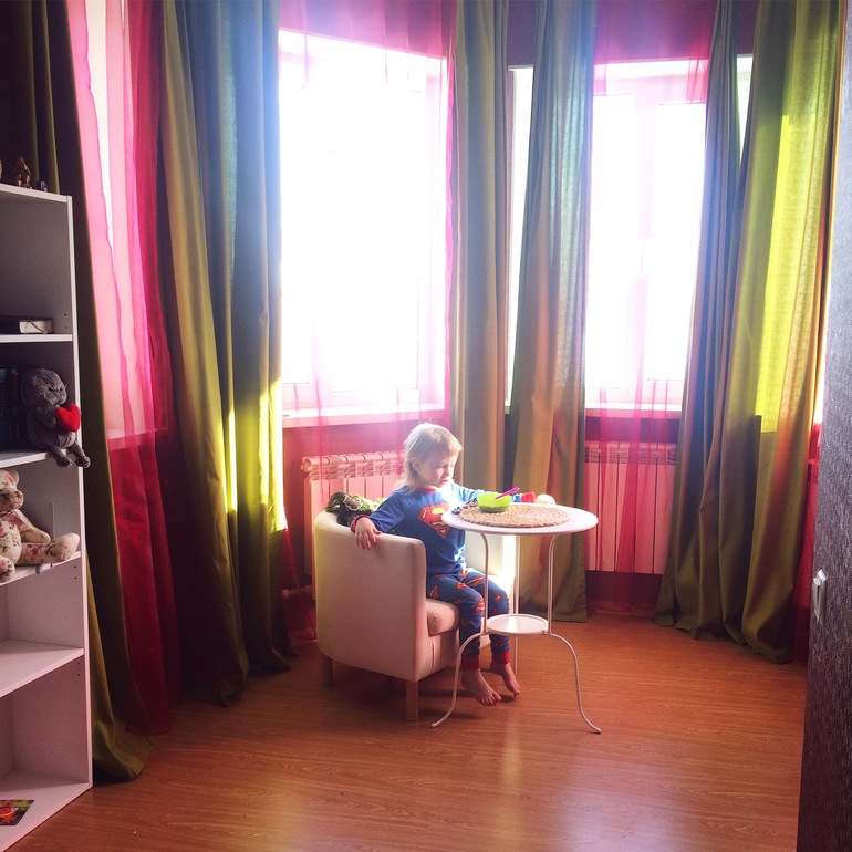 1) Шторы хочу сменить, сейчас обитают старые, вроде как сильно не портят вид, но они мне надоели донельзя. Хочу повесить две портьеры по бокам (скорее всего без рисунка) и тюль-сетку. И тут начинается "самое веселое". Комната северная, перед окном лоджия, мне света вечно не хватает. Солнце в 6 утра лишь слегка касается одним-двумя лучиками нашего окна (поэтому и цвет стен выбрали светло-салатовый, весьма хорошо добавляет и свежести, и света, особенно в сочетании с белой мебелью). В общем, у меня два вопроса: какой цвет штор Вам со стороны просится больше всего? (желтый, бирюзовый или ...)???