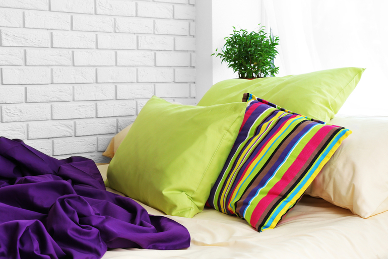 Вам девушка выше дала хорошее сочетание: зелёный, розовый, лиловый. У меня в спальне так.