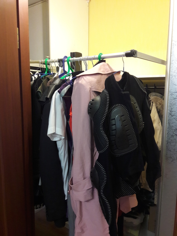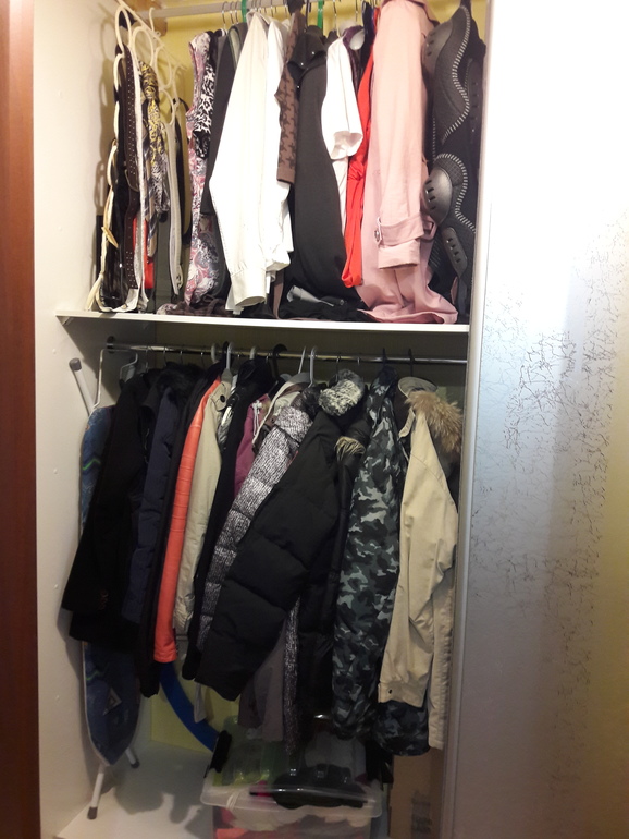 Левая часть шкафа - хранение вещей на штанге (и хранение гладильной доски))