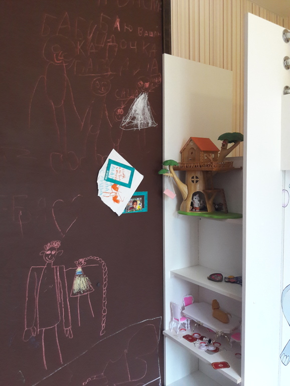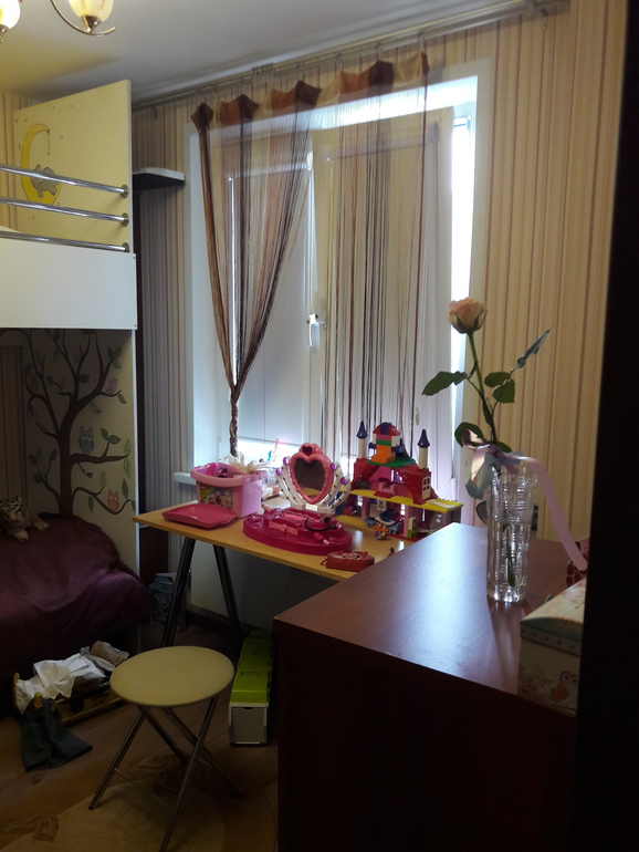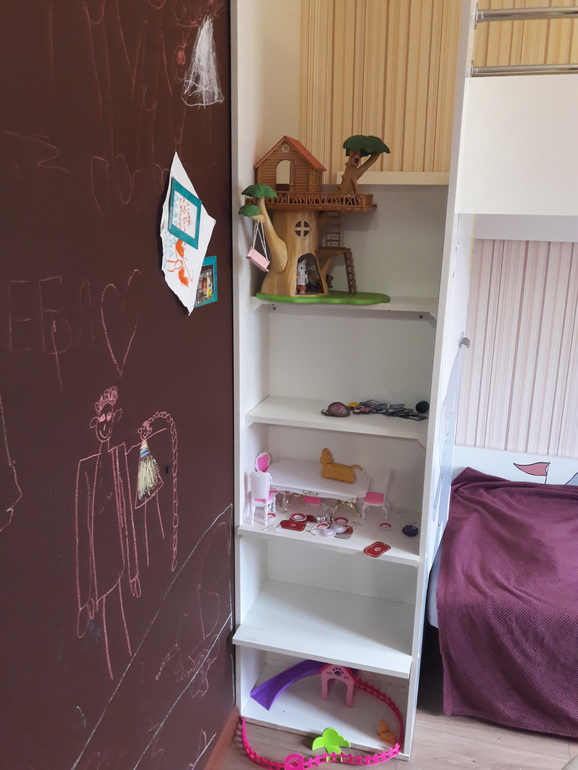 В следующем году в школу, поэтому мебель ей пока не покупала -летом уже спланируем комнату-школьника, а пока из всего что оставалось сделали комнатку (вот только нужен еще стеллаж для коробок с игрушками)