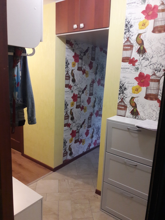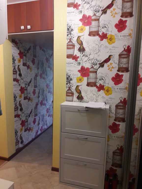 я понимала, что эти обои очень безумного яркого цвета, но влюбилась и в птиц и в этот желтый, что даже после ухода из магазина и проведя несколько ночей с мыслью об этих обоях ничего с собой сделать не могла - через пару дней поехали и купили их))