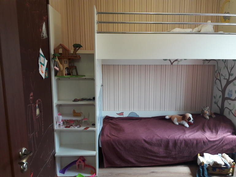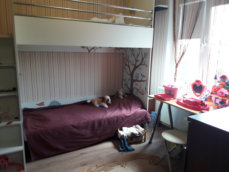 Спит она обычно наверху (кровать-чердак, сделанная мужем года 3 назад) - немного изменили в ней лестницу наверх.