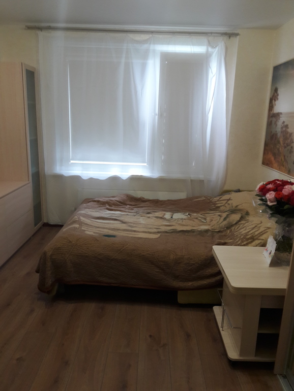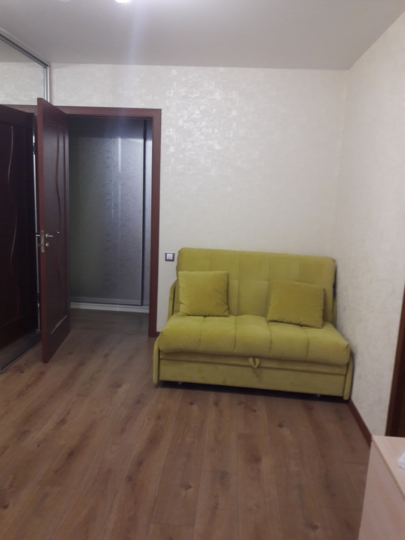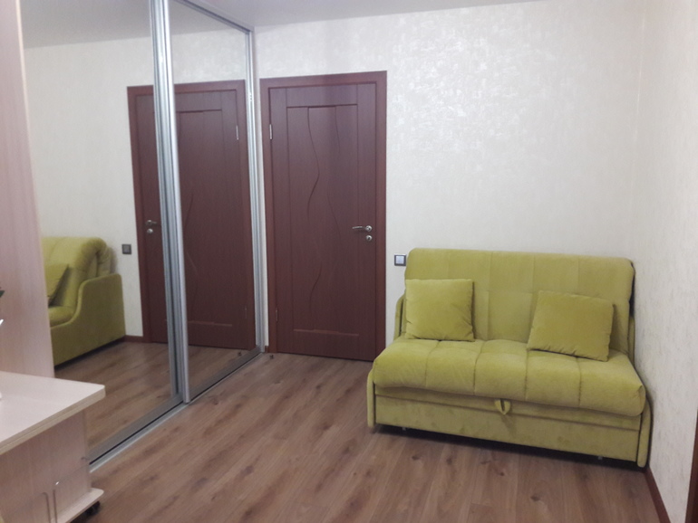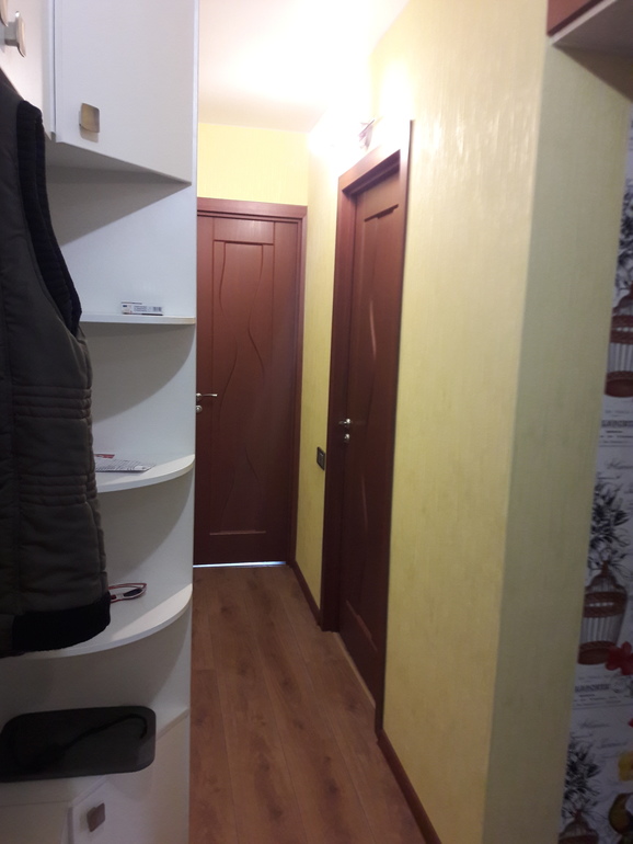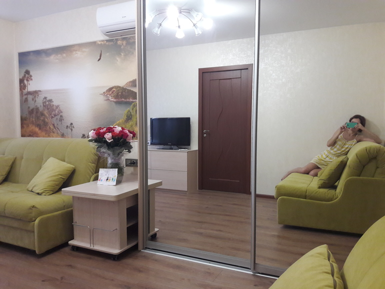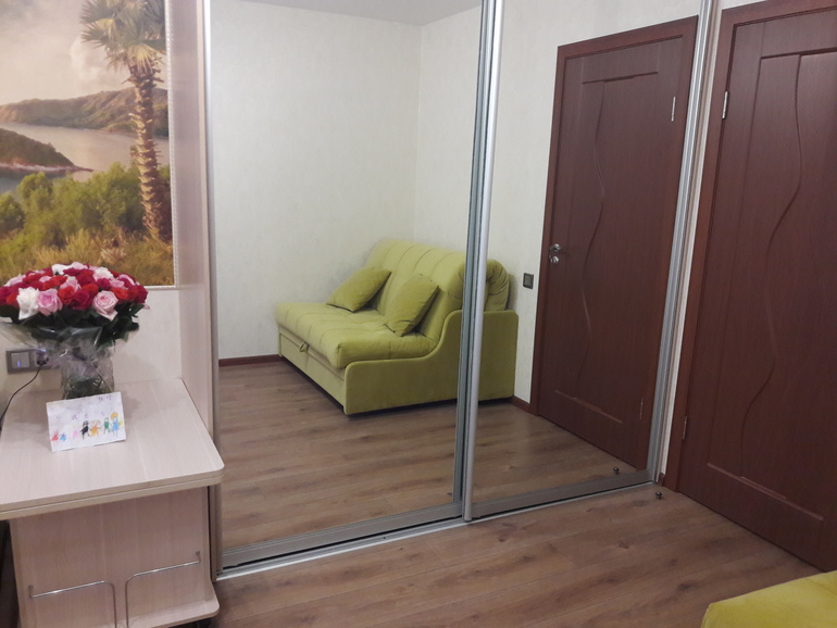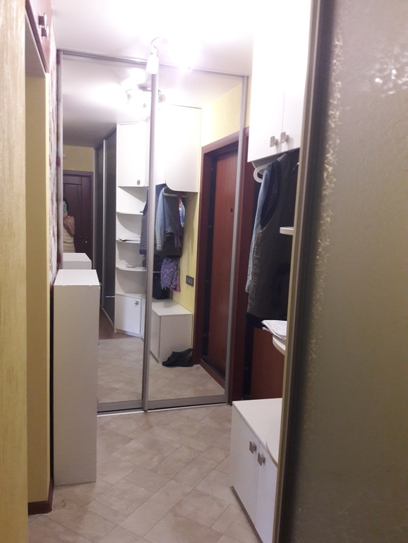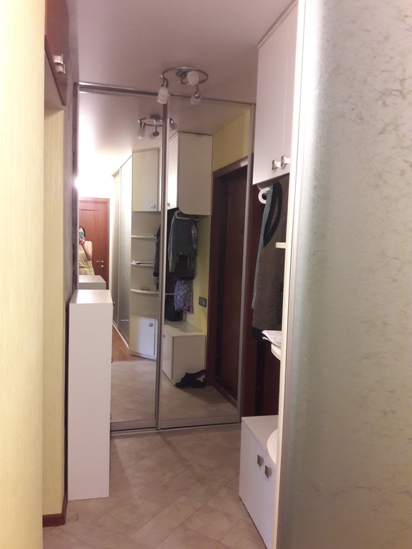 Справа от входа встроенный шкаф с зеркальными дверьми-купе.
