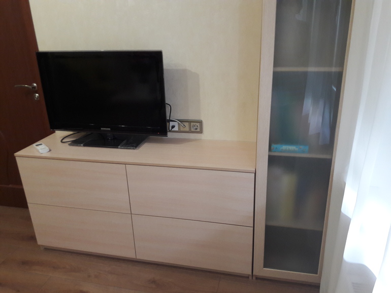 тумбу под тв тоже делали под заказ, вот теперь просится тв побольше, работаем над этим)) и как раз будут закрыты все розетки