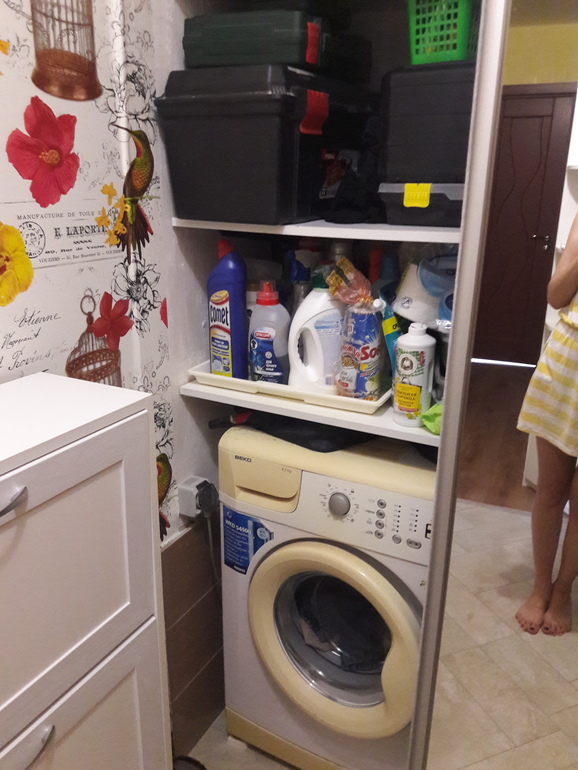 там расположилась стиральная машинка, бытовая химия, корзина для белья, пылесос, инструменты мужа и т.п. нужные вещи
