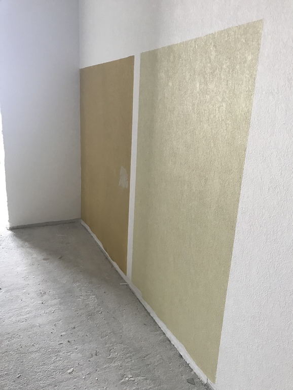 И вот мы делали выкрасы в квартире, кое-где с приложенным образцом пола.