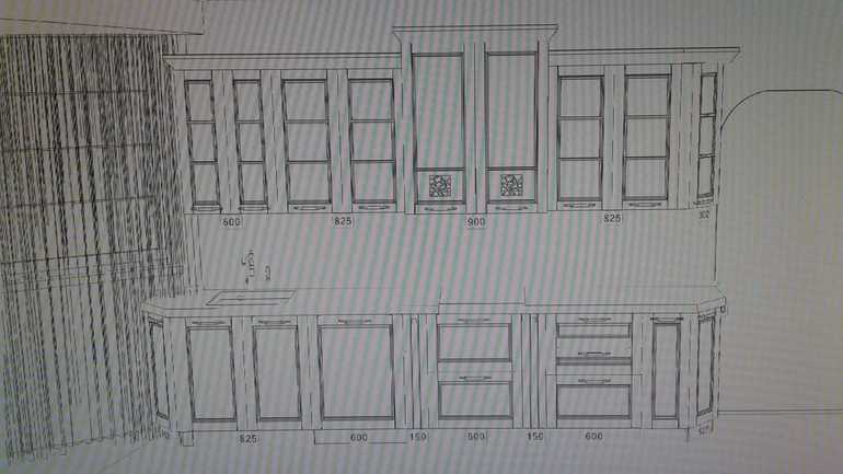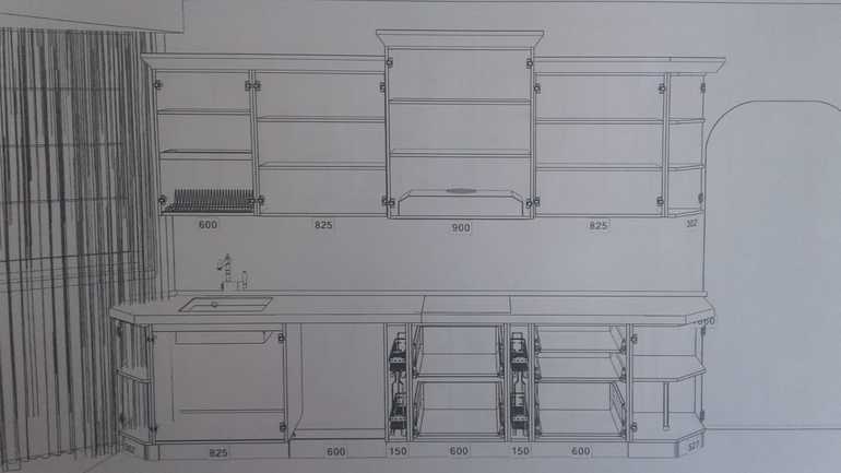 Нет. шкаф на 825 разделить внутренней перегародкой вертикальной и таким образом из одного получатся два шкафа. Сейчас на шкафу 825 две дверцы распашные. Они так и останутся, но ту, что ближе к вытяжке, заменить на стекло.