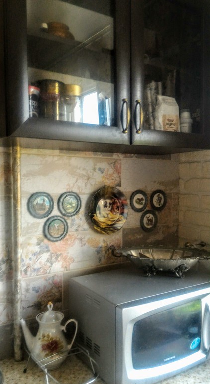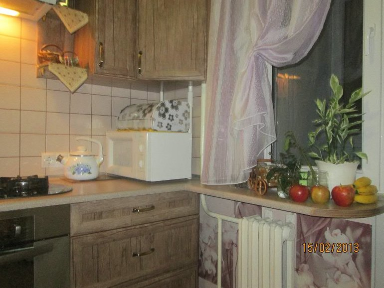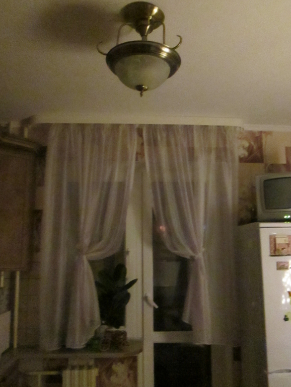 Если будут обои, то однотонные. Окно достаем и присоединяем лоджию к кухне. Холодильник выносим на лоджию. Столешницу на оршанке будем делать побольше. Эта мала. Еще хочу заменить вытяжку на купольную. Чтоб совсем село селом получилось) Да, вот такая я деревня. Карниз тоже снимать не хочу. Думаю, что мне захочется туда что-нибудь повесить. Когда-нибудь.