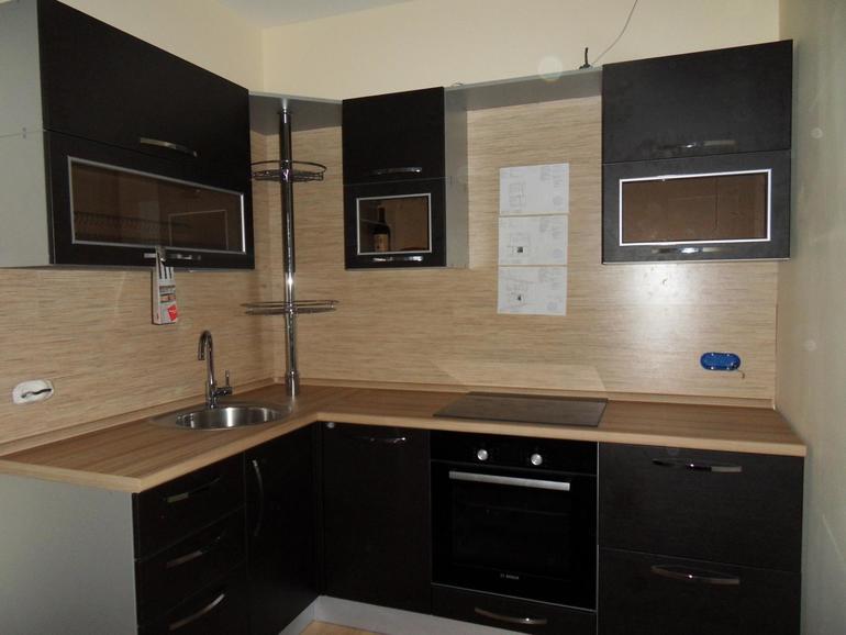 У нас ламинат вместо фартука. Тк панели такой какой нужно высоты в прадаже не было. На заказ в разы дороже и хлопотно. Ламинатом очень довольны, 5 лет без изменений моется отлично.