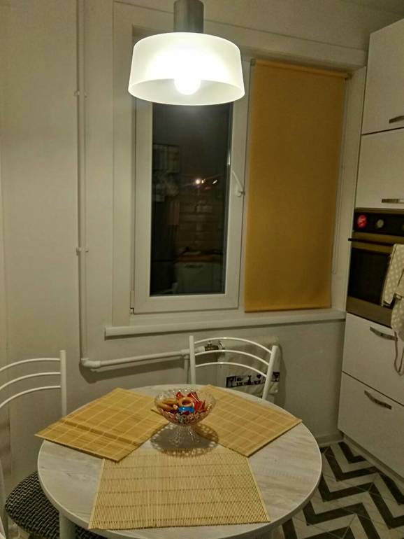 А это единственная жёлтая в абажуре над столом.