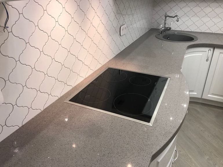 2)Фартук выкладывают после установки гарнитура и столешницы,только тогда можно обойтись без плинтуса настольного.