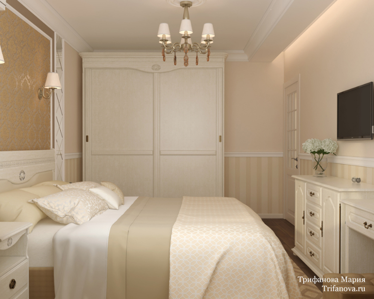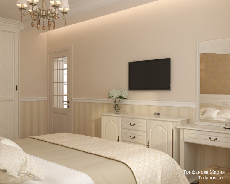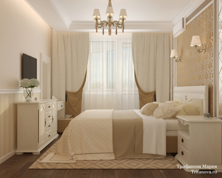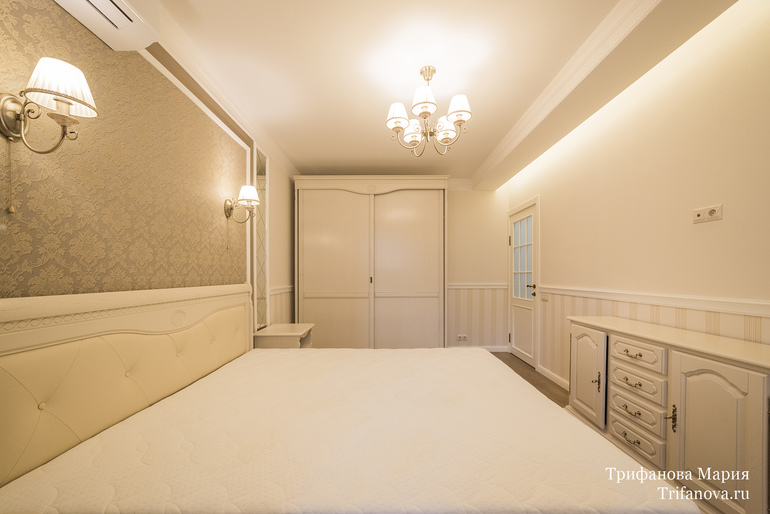 На фото не хватает штор, ковра и туалетного столика. Туалетный столик изготавливался позже под индивидуальные размеры.