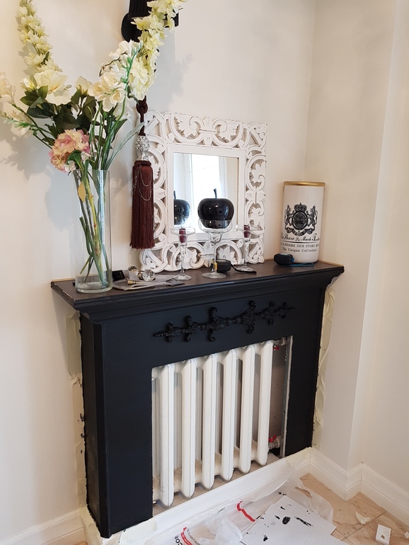 Первый раз вижу камин из батареи! )) Очень интересно! И в черном цвете отличный акцент получился вкупе с вашими светильниками. Не зря перекрасили).