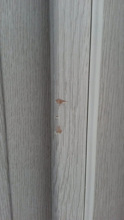Интерьерное решение жилых помещений.Обнаружился очередной косяк - вот такой... В одном месте (к сожалению, самом видном) на выступающем краю дверной коробки содрана пленка (точно не мной - я "не дышу" на ремонт буквально - либо так сделали изначально при установке, либо кто-то еще постарался из ремонтников-установщиков чего-то там, но это очень маловероятно, т.к. двери устанавливали в последнюю очередь, а потом в тот угол никто не совался, да и характер повреждения странный - явная симметрия прослеживается и это очень сильно чем-то надо было сделать, чтобы так содрать). Интересует Ваш реальный (ну или теоретический, но точный пошаговый) опыт, как это устранить (сделать незаметным):