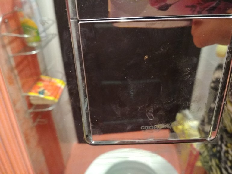 у меня на унитазе лежит аккуратно свернутая тряпочка из микрофибры, один взмах и нет пятен ни на какой кнопке, а имеются обе в наличии