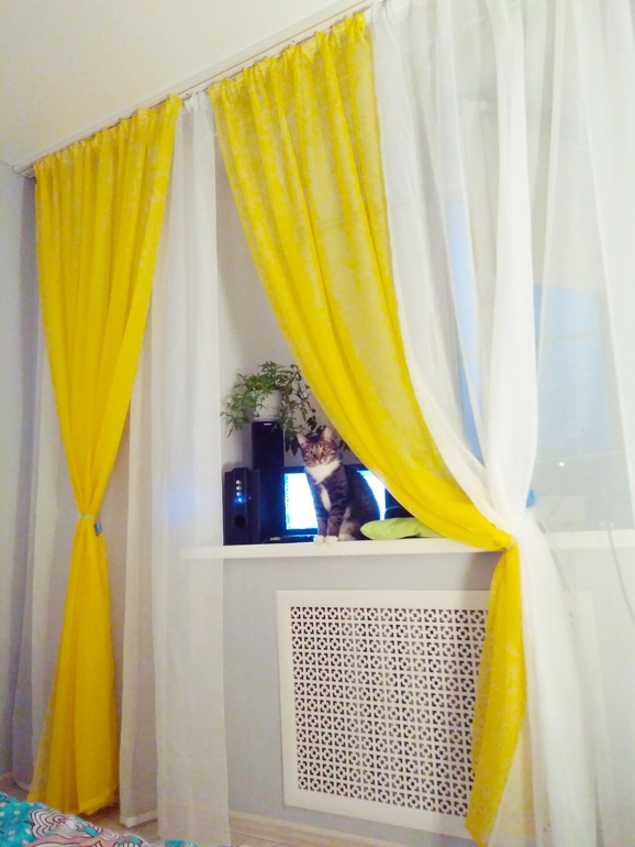 Декор окон. Текстиль. Жалюзи.Всё таки я сделала это - заказала шторы с жёлтым цветом. Пусть и цвета в комнате не сочетаются но мне нравятся 😊. Будет много солнышка 🌞. О котейках тоже позаботилась и сшила им лежаки 😺😺.