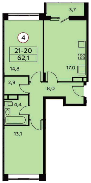 Хорошая планировка: площадь кухни позволяет зону гостиной выделить, оставшиеся комнаты можно на спальню и детскую поделить. Ничего лучше все равно не получится, окон-то всего три.