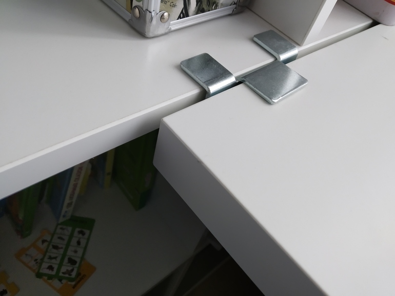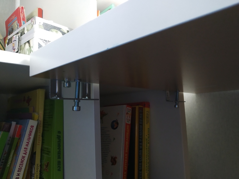 Здравствуйте! я ещё хотела спросить, получается что с одной стороны столешница крепится к стеллажу а с другой лежит на тумбе (у нас будет одно рабочее место)?