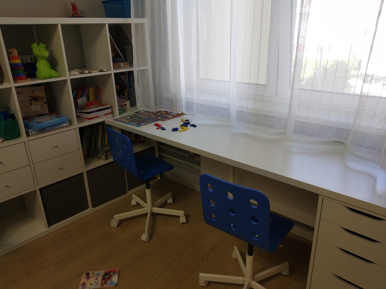 С рабочей зоной мы пошли по самому простому пути - Икея. Дёшево и сердито. И размеры можно под себя подобрать, и наполнение.