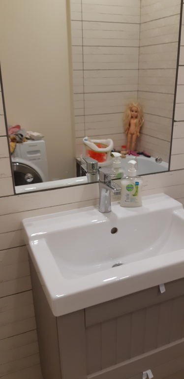 А может у кого есть зеркало низко расположенном к умывальник, а покажите? Ещё зеркало на всю ширину стены будет.