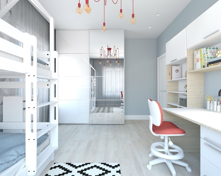 Мне все понравилось . Но не увидела зеркала в прихожей. И двухьярусная кровать не очень , как и обьединенный санузел с кухней-гостиной