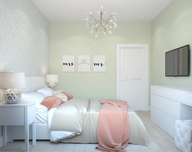 Часть мебели ( кровать, лампы, тумбы) уже были куплены, необходимо было вписать в новый интерьер.