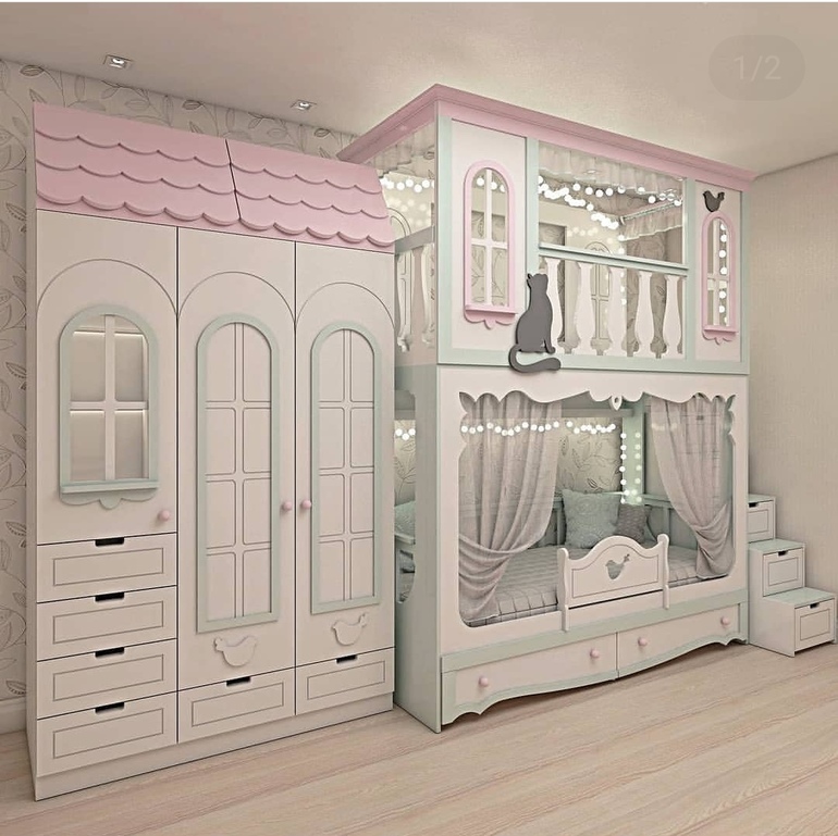 Интерьерное решение детской комнатыВсем привет. Дочь очень хочет кровать-чердак, точнее сам второй этаж с игровой целью. Спать будет только на нижнем уровне. Покажите, пожалуйста,у кого есть такие. Как они удобны?