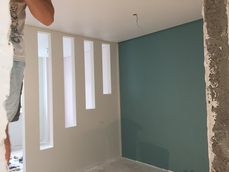 Это детская комната, для двоих детей. Выкрас делали на 7 цветах. Хорошо хоть знакомая работает в магазине -помогла. А так в разных комнатах одна и та же краска смотрится по разному.