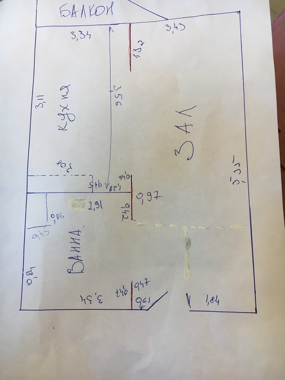 Перепланировки стен. Согласование перепланировки квартир и нежилых помещений.Всем привет! По планировке нет отдельного входа на кухню и совсем нет холла. Как можно сделать отдельный вход на кухню и отделить немного под холл ? Покидайте советами, плиз:) Несущие стены - красным.