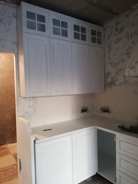 Во-первых, она установлена не правильно, с одного края прям лобзиком отрезана больше чем надо, получилась короче шкафа, дальше, она в месте где будет мойка вровень с фасадом, что очень быстро убьёт мне этот сам фасад... Ну и на сладкое, вот не нравится она мне - не подходит, кажется...