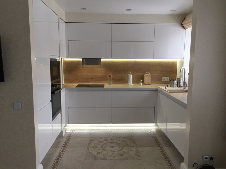 Кухня Зов, акрил белый глянец. У них 2 белых оттенка, я выбрала тёплый белый.