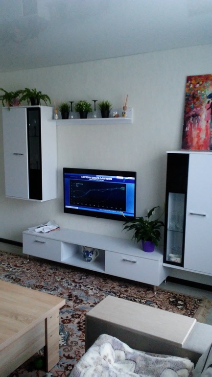 У нас телевизор на стене. В углу комп. Напротив диван.Комната 17м.фото нет, шкаф там разобранный сейчас