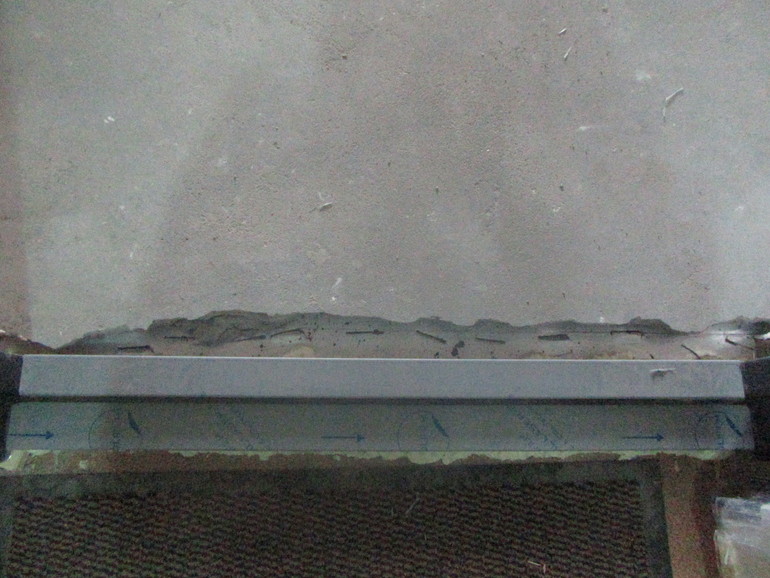 входную дверь устанавливали после стяжки и выдалбливали стяжку, толщина стяжки в этом месте 4,5 см