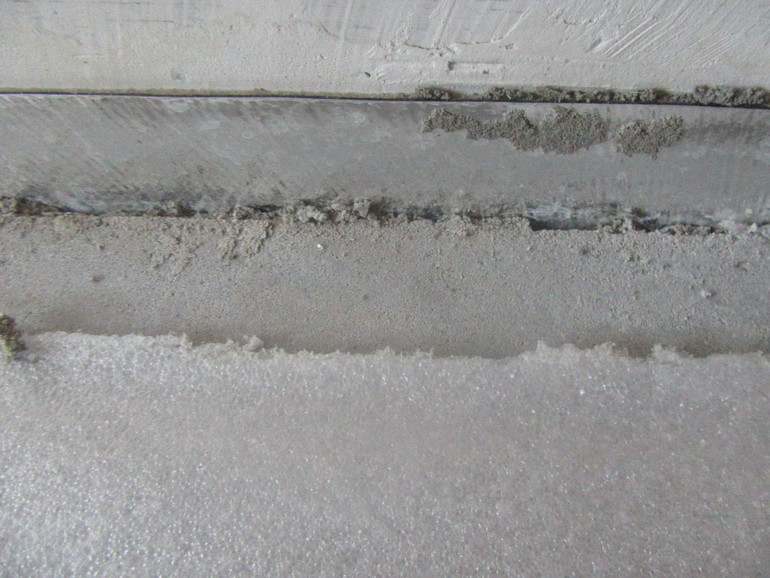 Все цементные крошки я выметала, пропылесошу строительным пылесосом. Но боюсь что в зазоры между демпферной лентой и шумоизоляцией пола по периметру стяжки попадет строительный раствор при выравнивании стен по маякам. Нужно ли их обрезать или присобачивать к стене?