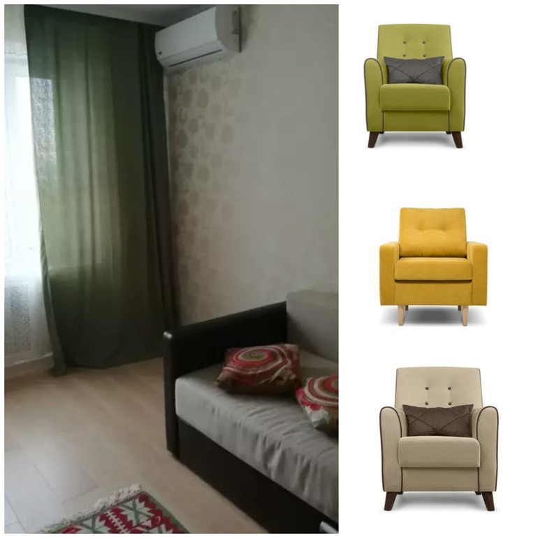 А как насчет бескаркасного кресла? Я раньше думала что они не удобные. Когда попробовала на них поседеть оочень понравилось. Можно вот тут посмотреть https://productcenter.ru/products/catalog-miagkaia-miebiel-460 что касаемо цвета, я бы выбрала темно коричневый под диван.