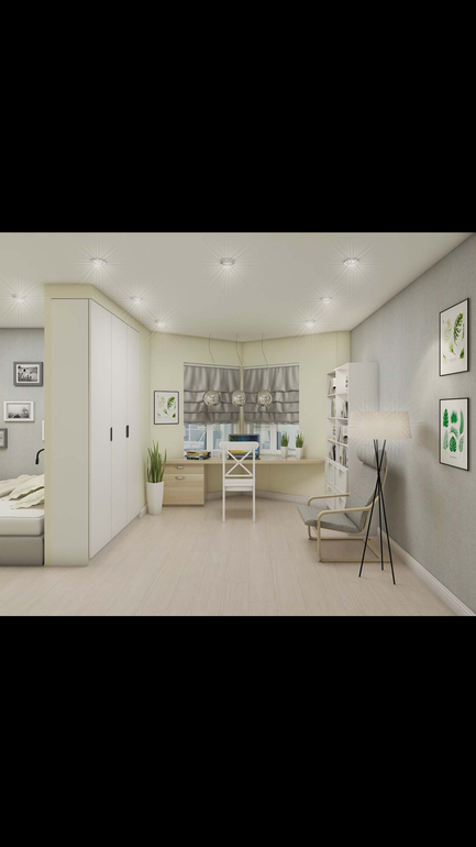 Совместить в 1 помещении и места для хранения и большую Кровать, да ещё и рабочее место и все это на 19 метрах. Мне очень понравилась его работа, оперативность, предложения альтернативных вариантов, цветовые решения(люблю спокойные) вот, что нам спроектировали) сейчас воплощаем в