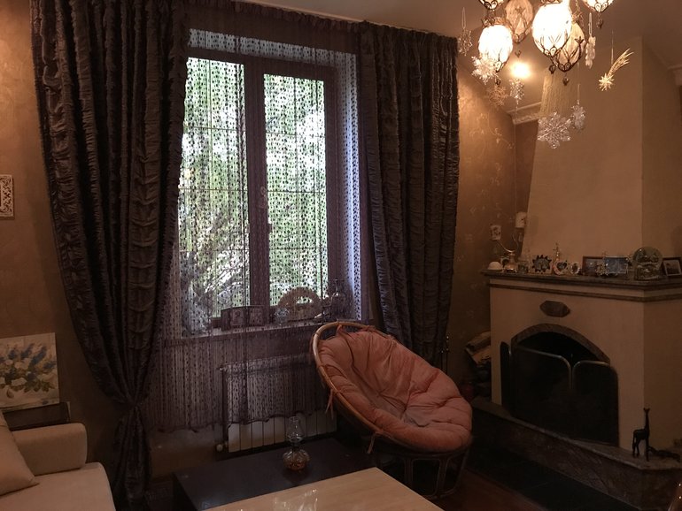 у нас маленькая комната-каминная-диван,комод,стол,шкаф.сейчас у нас пасмурно,вряд ли фото получится.сейчас поищу готовую,где штора.