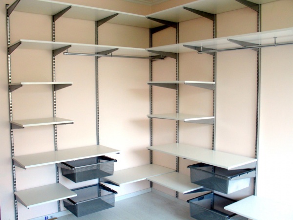 Плюсуюсь за икеевскую систему Альгот. Была такая, за свою стоимость отличная. 4 года назал собрала г-образную гардеробную за 12т. Проблемы только с выдвижными корзинами, но можно смириться.