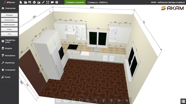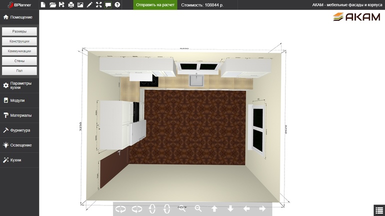 В нижнем шкафу после варочной панели идет бутылочница (чтобы увеличить рабочую поверхность между варкой и мойкой), затем ПММ на 60 (не нашла соответствующий рисунок, пришлось обозначить шкафом с открытой полкой), затем мойка на 80 (скорее всего с двойной чашой), затем шкаф на 80 с нижней сушилкой. Сверху вроде по рисунку более-менее понятно.