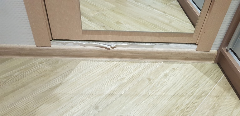 Что можно сделать с обоями под плинтусом у двери ванной?