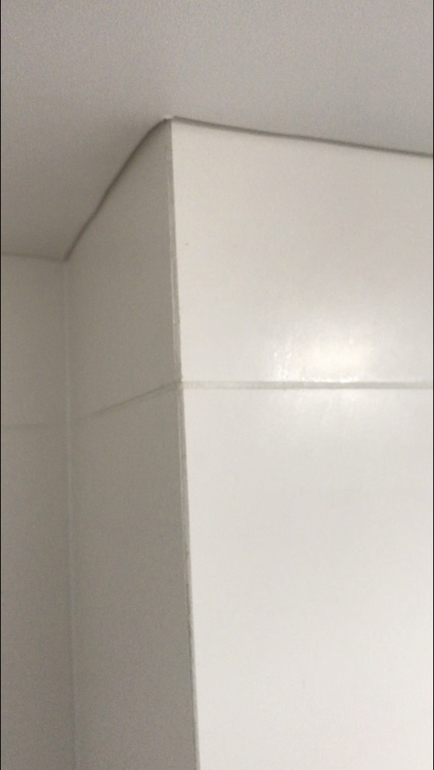 Думала что причина в кривой плитке (хоть она вроде и не кривая), но очень маловероятно - вживую по крайней мере видно что это все-таки полотно.
