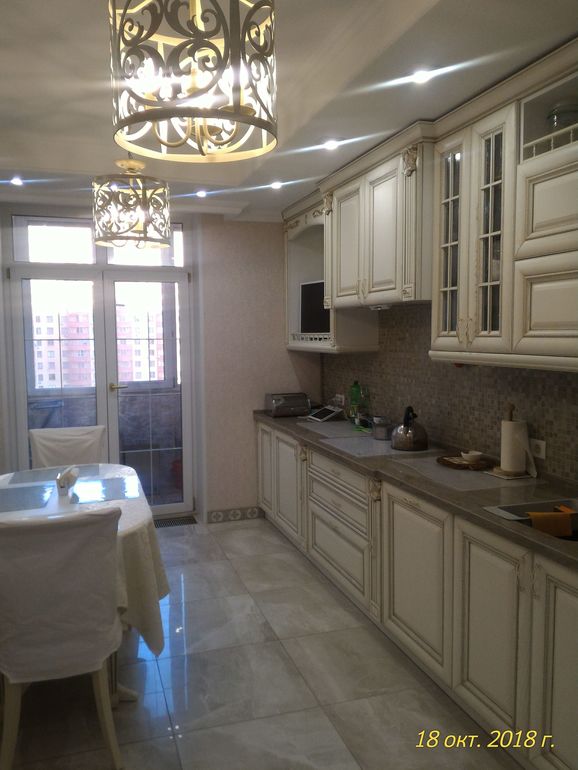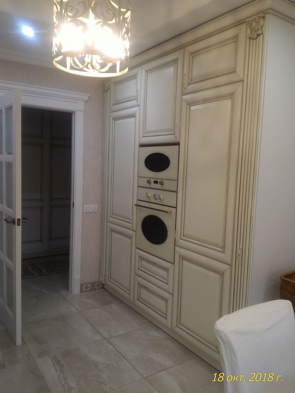 Цвет кухни - сливочный, выбеленный кофе с молоком.