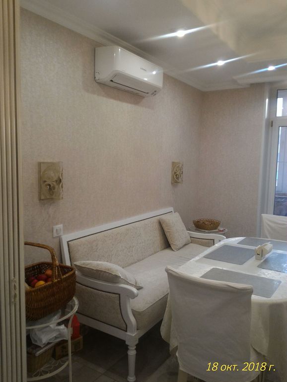 кухня супер, цвет, планировка, обеденная зона, грубовато смотрится корзина, сюда бы что-то белое кружевное, ну и кондиционер считаю что надо было сдвинуть ближе в угол,икеевский столик из баллончика красили?